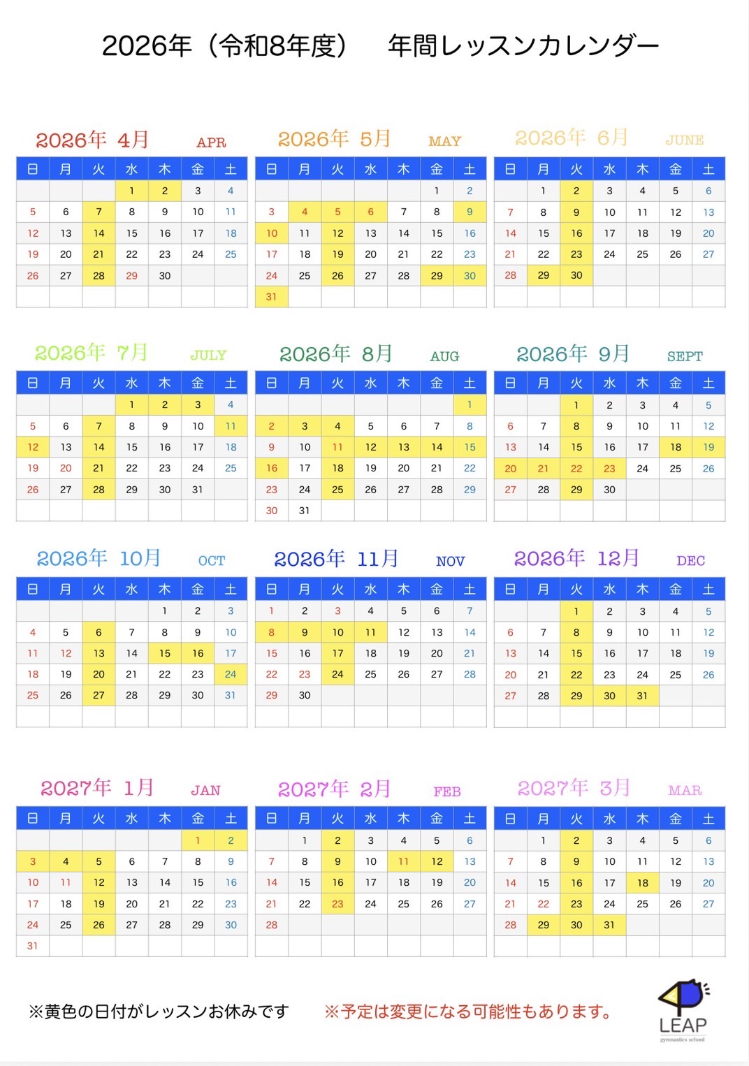 ※無断欠席の場合は次回1回分のレッスン料を次回レッスン日にお支払いいただきます。ご了承ください。 - 当日は体調を整えて元気にいらしてください。
